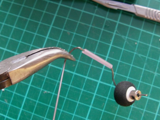 If you’re just doing a skid version, first turn the end of the wire into a tight loop to make a ‘safe end’ - that gets rid of the sharp point. Allow about 30mm for the skid and then work forward from the first mock-up picture of the tail.