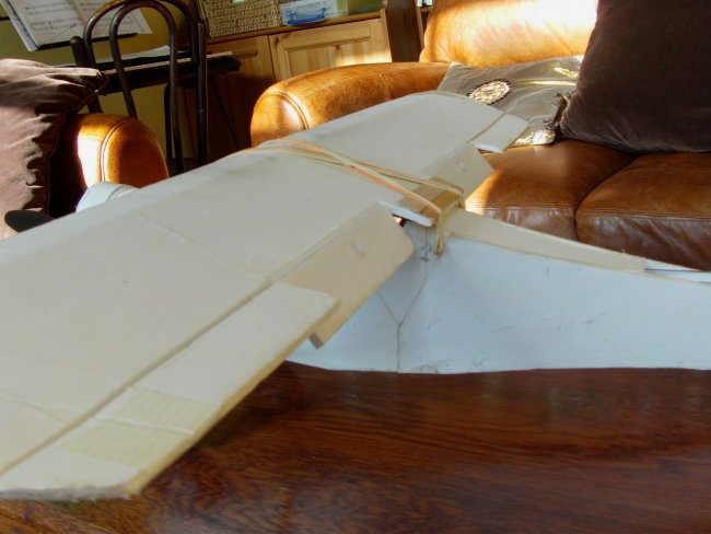 It was a fairly simple addition – a couple of new flap panels cut into the wing. I added an extra tongue depressor to help strengthen the root of the wing.