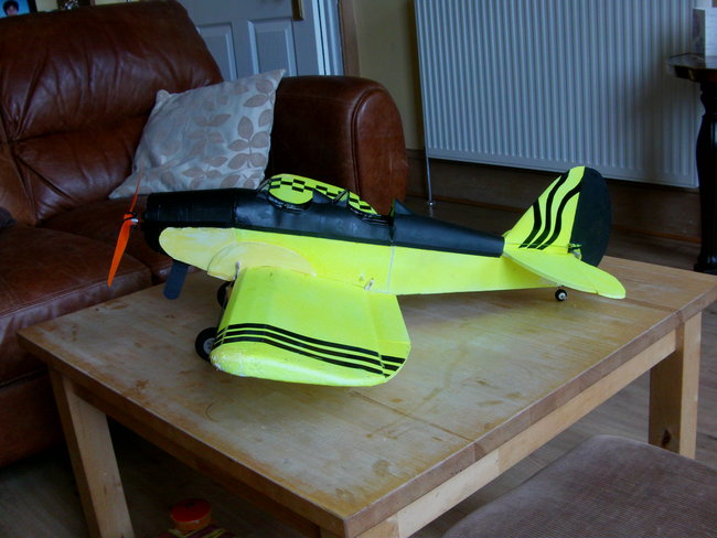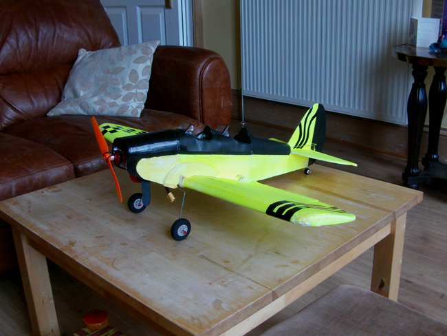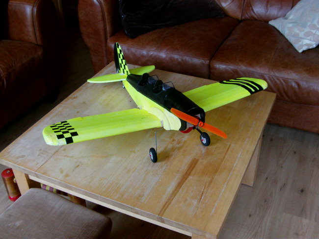First flight ended in some kind of brown-out, and the plane did a nasty belly flop. Fortunately nothing was broken. I swapped-in another battery and this time I hand launched. Once it was trimmed-out it was great fun.I was quite happy just looping it around the field. The landing was a bit rough again, but I reckoned with better balance it would come down a lot easier.