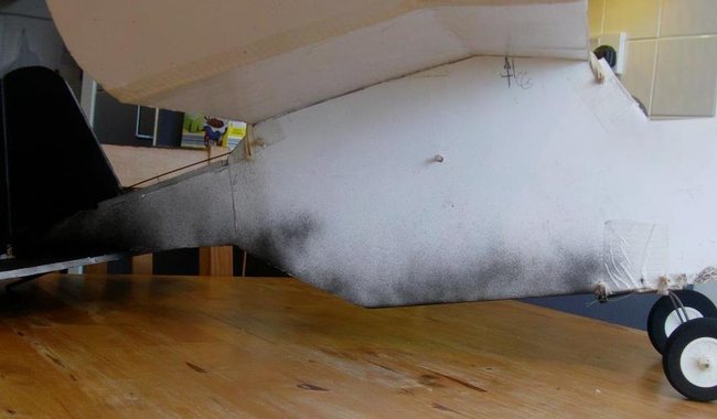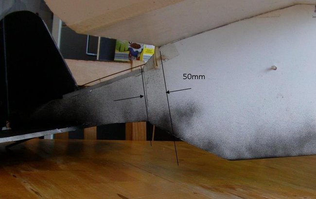 Basically I shifted the tail up about 70mm. I was too quick to get a 'before' image, but you’ll recognise the outline of the original Old Fogey in this mock-up. The method I used involved shortening the fuselage by 20mm - which is why there's a gap there in the photograph.